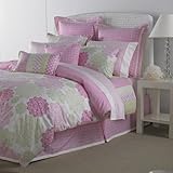Tommy Hilfiger Hibiscus Hill Collection features pink and green medallion motif with white eyelet accents. The Comforter/Duvet set features a pink/green stamped medallion print reversing to pink and white quadrofoil. Set also includes two Standard shams (one included with the Twin Set), the shams feature the same print as the comforter/duvet and feature a hidden zipper. Bedskirt is a pink lace print.