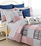 A classic American motif is revolutionized in this Colton Point comforter set by Tommy Hilfiger. Woven together with detailed zigzag topstitching, navy, red and white squares feature traditional plaids and stripes. A minimalistic modern design for your bedroom.Discount "Tommy Hilfiger Colton Point 3 Piece Full/Queen Comforter Bed In a Bag Set" Deals.